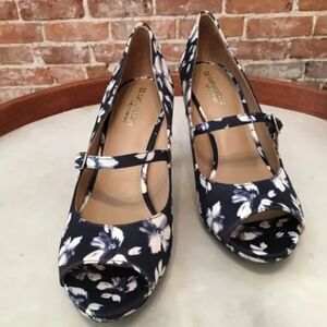 BRAND NEW NATURALIZER N5 NAVY BLUE FLORAL IRIS OPEN TOE MARY JANE COMFORT PUMP