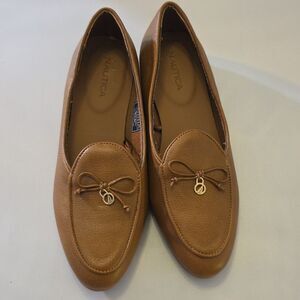 BRAND NEW NAUTICAL LEATHER LOAFERS with METAL RING DETAIL SIZE 8 COLOR CONGNA BROWN all man-made materials lining man-made material Experience timeless elegance with Nautica's brown loafers, featuring a sophisticated metal ring detail and a comfortable slip-on design. Crafted with a smooth, matte finish, these flats offer a minimalist silhouette perfect for both casual and semi-formal occasions.THIS ITEMS IS BRAND NEW WITH TAG NO BOX CHECK THE PICTURES