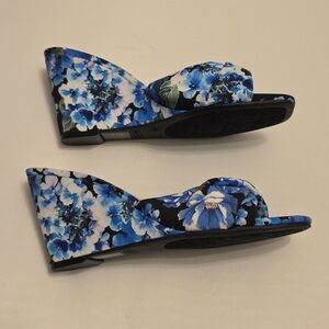 BRAND NEW NINE WEST FLORAL DESIGN EMBELLISHMENT SQUARE OPEN TOE WEDGE SANDALS SIZE 71/2M MULTI-COLOR LIKE DARK BLUE WHITE AND MORE textile upper man-made material lining textile man-made sole Elevate your style with these Nine West wedges, featuring a striking blue and black design. The open-toe slip-on style ensures comfort and ease, while the wedge heel offers both height and stability. Perfect for making a statement at any warm weather occasion.heel height measurements approximately 3"inched THIS ITEMS IS BRAND NEW WITH TAG NO BOX CHECK THE PICTURES