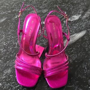 BRAND NEW RAMPAGE WOMEN'S STRAPPY HEELED OPEN TOESANDAL SIZE 8 COLOR PINK Step out in style with these vibrant pink strappy heeled sandals. Perfect for any occasion, they offer both elegance and comfort.all man-made materials lining man-made material cut out design Heel Height measurements approximately 4"inched THIS ITEMS IS BRAND NEW WITH TAG NO BOX CHECK THE PICTURES