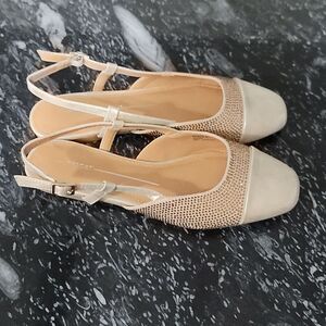 BRAND NEW REPORT MIKKI Elegant CREAM and GOLD WOMENS SLINGBACK FLAT SHO…G1