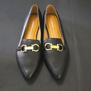 BRAND NEW REPORT RAYDER LOAFERS WITH GOLD DETAIL DESIGN FLAT SIZE WMS 7.5 COLOR BLACK featuring a pointed toe Slip-on style all man-made materials this Elegant black loafers featuring a gold accent. Perfect for a stylish look. THIS ITEMS IS BRAND NEW WITH TAG NO BOX CHECK THE PICTURES(FYI, THE FIRST PICTURES IS JUST A MODEL TO SHOW WHAT THE SHOE LOOK ON CHECK THE PICTURES)