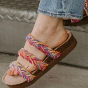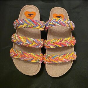 BRAND NEW ROCKET DOG WOMEN'S GREEN ASHLEY STRING BRAID SANDAL SIZE COLOR 7 MULTI-COLOR LIKE PINK, GREEN, ORANGE AND MORE Step into comfort with these stylish braided strap sandals. Perfect for any casual outing, these cream sandals offer both elegance and ease.all man-made materials lining upper balance man made materials Faux Cork Outer material Cotton Inner material Synthetic Closure type Slip On style Shoes by Rocketdog Step into summer Slip-on style Woven straps Open toe Moulded footbed Chunky sole . Step into style with these vibrant braided sandals. Perfect for adding a pop of color to any outfit.THIS ITEMS IS BRAND NEW WITH TAG NO BOX CHECK THE PICTURES