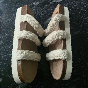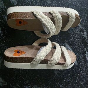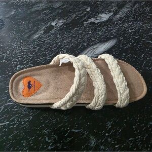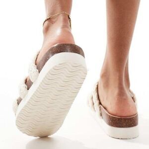 BRAND NEW ROCKET DOG WOMEN'S GREEN ASHLEY STRING BRAID SANDAL SIZE COLOR 7.5 CREAM Step into comfort with these stylish braided strap sandals. Perfect for any casual outing, these cream sandals offer both elegance and ease.all man-made materials lining upper balance man made materials Faux Cork Outer material Cotton Inner material Synthetic Closure type Slip On style Shoes by Rocketdog Step into summer Slip-on style Woven straps Open toe Moulded footbed Chunky sole THIS ITEMS IS BRAND NEW WITH TAG NO BOX CHECK THE PICTURES.
