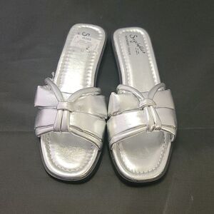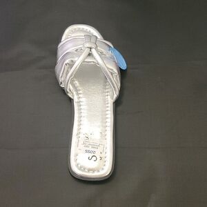 BRAND NEW SEYCHELLES MEMORY WOMEN' SSANDAL 9M COLOR SILVER METALLIC WITH BLACK BOTTOM step out in style with these elegant silver sandals from Seychelles Step. Perfect for any occasion, these shoes offer both comfort and open round toe slip on style sophistication.THIS ITEMS IS BRAND NEW WITH TAG NO BOX CHECK