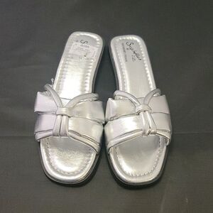 BRAND NEW SEYCHELLES MEMORY WOMEN' SSANDAL 10M COLOR SILVER METALLIC WITH BLACK BOTTOM step out in style with these elegant silver sandals from Seychelles Step. Perfect for any occasion, these shoes offer both comfort and open round toe slip on style sophistication.THIS ITEMS IS BRAND NEW WITH TAG NO BOX CHECK