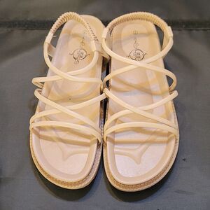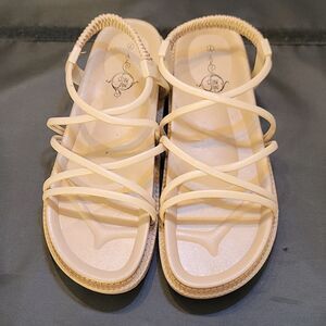 BRAND NEW SOLE MATES LADIES STRAPPY SUMMER SANDALS SIZE 7 COLOR 7 all man-made materials lining man-made material cut out round toe Stylish beige strappy sandals with a woven detail. Perfect for casual outings. THIS ITEMS IS BRAND NEW WITHOUT TAG CHECK THE PICTURES(FYI THE FIRST PICTURES IS JUST A MODEL TO SHOW WHAT THE SHOE LOOK ON CHECK THE PICTURES
