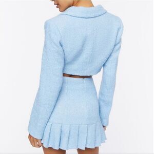 BRAND NEW WOVEN TWEED BLAZER FEATURING A CROPPED LENGTH, NOTCHED LABELS SETS SIZE MEDIUM COLOR BLUE A woven tweed blazer featuring a cropped length, notched lapels, a darted bust, long sleeves, and a double-breasted front.Content + Care Shell: 46% polyester, 33% wool, 18% acrylic Lining: 91% polyester, 9% spandex Hand wash cold THIS ITEMS IS BRAND NEW WITHOUT TAG CHECK THE PICTURES