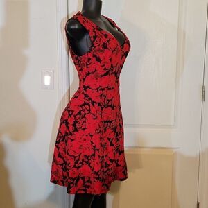 BRAND NEW COVINGTON RED&BLACK FLORAL PATTERN DESIGN V-NECKLINE DRESS