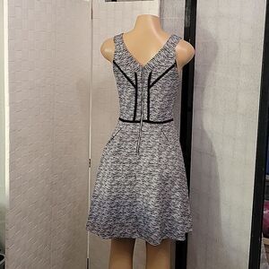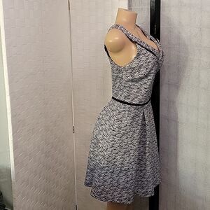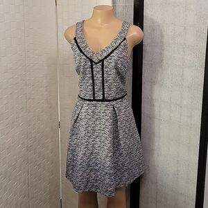 BRAND NEW MOSSINO SKATE PLEATED DEEP V-NECK WOMEN"S DRESS SIZE MEDIUM COLOR BLACK&WHITE Dress to impress with this sleeveless skater dress! The soft fabric and flared skirt give it an elegant twist that brings out the intricate design with a beautiful vibrancy. 95% polyester, 5% spandex
