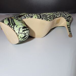 BRAND NEW MIX NO 6 HIGH HEEL WOMEN"S STILETTOS SHOE SIZE 9 COLOR GREEN&BLACK it doesn't get more trendy than this Mix No 6 platform pump the sarti heel adds a fun butterfly print to a classic silhouette gfor a look that will take your wardrobe to new heights butterfly printed fabric upper round toe 1 1/4" hidden platform 4"3/4 covered heel Synthetic sole THIS ITEMS IS BRAND NEW WITH TAG NO BOX CHECK THE PICTURES