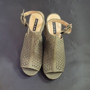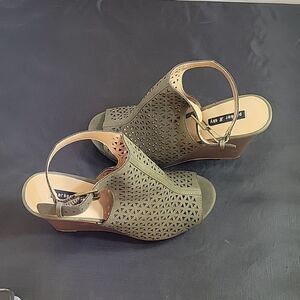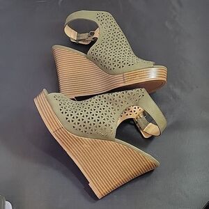 BRAND NEW PARKER&SKY ADJUSTABLE BUCKLE OPEN TOE CUTOUT WEDGE SANDAL SIZE 8 COLOR OLIVER GREEN MADE WITH UPPER MAN MADE MATERIALS LINING MAN INSOLE MAN MADE SOLE MAN MADE MATERIALS HEEL HEIGHT MEASUREMENTS APPROX 4.15"INCHED THIS ITEMS IS BRAND NEW WITHOUT TAG CHECK THE PICTURES (FYI SMALL DAMAGE TO THE SIDE CHECK THE PICTURES)