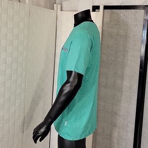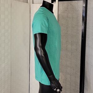 BRAND NEW PETER WERTH LONDON MEN'S SHORT SLEEVE SHIRT SIZE LARGE COLOR GREEN WITH DARK BLUE ROUND NECK ONE HIDDEN POCKETS IN THE TOP FRONT MADE WITH 52%COTTON &48%POLYESTER THIS ITEMS IS BRAND NEW WITH TAG CHECK THE PICTURES