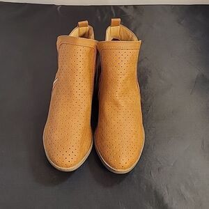 BRAND NEW SOCIOLOGY TWO-ZIP ROUND TOE SLIP-ON BOOTIESSIZE 10 COLOR COGNAC BROWN Take each day one step at a time with the sociology Shoes ankle booties! These gorgeous booties are made out of faux leather and feature a ~1.5" stacked chunky heel and an almond-shaped toe, perfect for everyday wear! These booties also feature an interior side zipper that functions for easy on/off access, and an exterior side zipper which gives these shoes an edgy look. These beauties are finished off with a lovely triangle-shaped laser cut design that decorates the full top part of the boots. Wear these booties with all your favorite outfits! Pair them with some cutoff denim shorts and a knotted graphic tee for a cool and casual springtime look, or with some leggings and an oversized pullover sweater for the ultimate winter outfit! Made with all man-made/ materials.THIS ITEMS IS BRAND NEW WITHOUT TAG OR BOX CHECK THE PICTURES