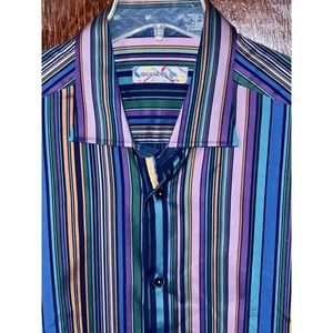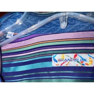 BRANDOLINI BLUE MULTI COLOR STRIPED COTTON SHIRT XXL FLIP CUFFS NICE SHEEN