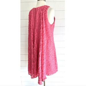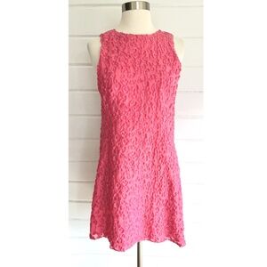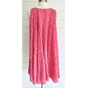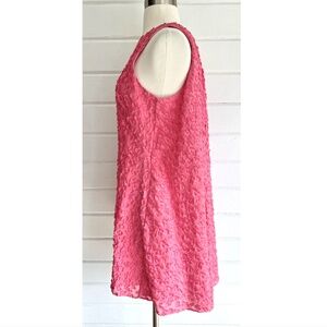 Fabulous , fun dress made from a light, highly textured fabric - in a simple sheath silhouette with a full, draped back. Back zip.
