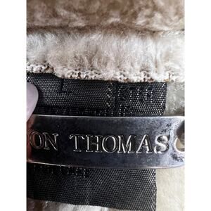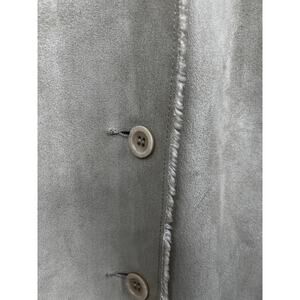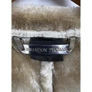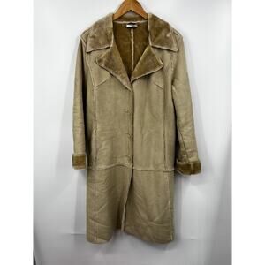 BRANDON THOMAS Womens Long Coat L Tan Suede Leather Faux Fur Lining Ranch Boho