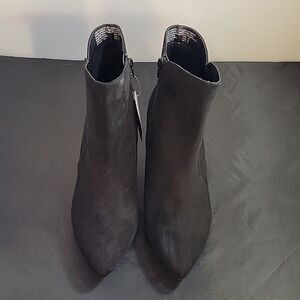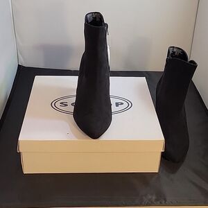 BRAND SCOOP NYC WOMEN'S STILETTOS ANKLE BOOTIES SIZE 10 COLOR BLACK SUEDE Sleek with a touch of sophistication. Stiletto Ankle Booties, a seasonal favorite from Scoop, arrives in a soft faux suede finish with a subtle notched topline, balanced with a tapered stiletto heel. Jeans and midi or mini skirts are the way to go for all-work, all-play style. Exclusively at Material: Upper: 100% Polyester; Lining/Sole: Manmade materials Care: Spot clean Country of Origin: Imported Heel Height & Type: 3.39” stiletto heel Boot Shaft & Circumference: Shaft Height: 5.2”; Circumference: 11.22” Closure: Inner side zip closure Features: Comfort footbed; pointed toe Women’s Stiletto Ankle Booties from Scoop Scoop. Meet your must-haves. Get inspired with fun, flirty pieces, the latest trends and some unexpected finds. Here now—your go-to looks for all you do. THIS ITEMS IS BRAND NEW WITH TAG AND BOX CHECK THE PICTURES
