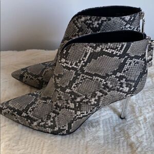 NEW WOMENS BRAND X OFFICINE REX HEEL ANKLE BOOTS BOOTIES SHOES BLACK SNAKE back zipper closure Cushion insoles Split top Import Heel: 4 in Shaft: 3.75 in