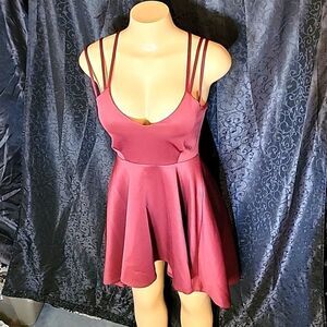 BRANDY BLU BURGUNDY LONG BACK SHORT FRONT SPAGHETTI STRAP WOMEN"S DRESS