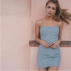 BRANDY MELVILLE Karla Railroad Stripped Dress Blue White Fitted Mini