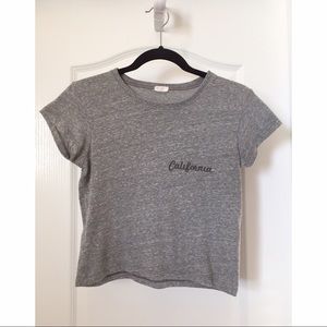 Grey Brandy Melville/John Galt crop top that says 'California' on it from PacSun ☀️ Lightly worn. No stains or holes!! Smoke free.