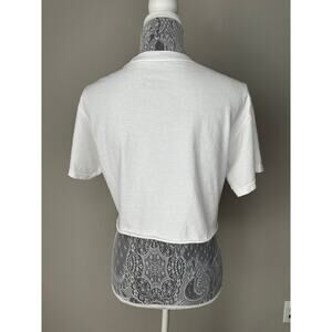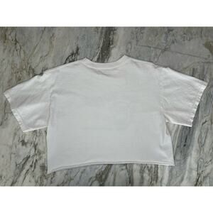 Features "Club Inferno" Cayman Island Devil Satan Graphic on front. Boxy cropped short sleeve t-shirt design in black and white. Made in the USA