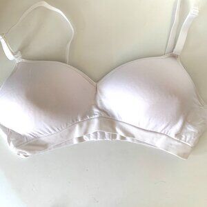 Madenform Fruit of Loom white, underwire, back closure, light padding, attached straps, very cozy, comfy bra