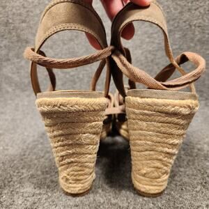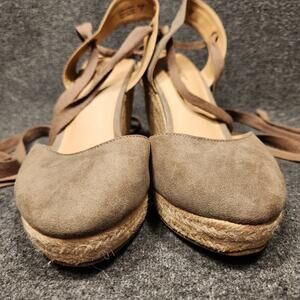 BRASH Taupe Faux Suede Lace Up Espadrille Wedge Closed Toe Sandals Womens 9