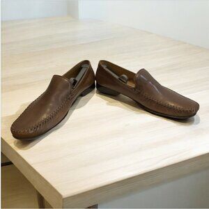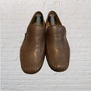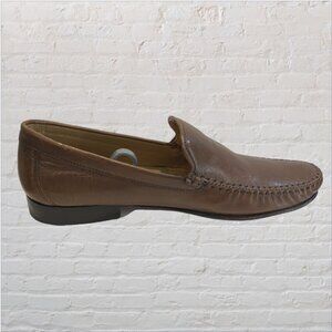 BRASS BOOT -- Men's Loafers, Brown Leather, Moccasin Style, Stitched Toe, Slipon