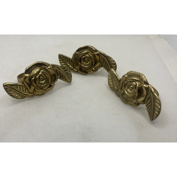 BRASS ROSE NAPKIN RINGS ~ SET OF 3.