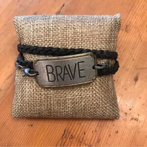 ▪️BRAVE Wrap Bracelet ▪️Black Leather Weaved Band ▪️Antiqued Gold & Silver Metals ▪️New/Boutique Tagged ▪️Excellent Condition