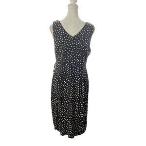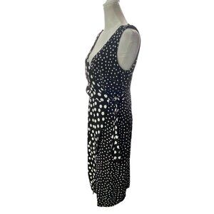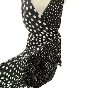 BRAVISSIMO Curvy Polka Dot Faux Wrap Dress V Neck Sleeveless Black White 10