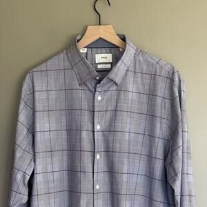 BRAX Derek Modern Fit Plaid Button Up Shirt In Navy Size XL Hi Flex Houndstooth