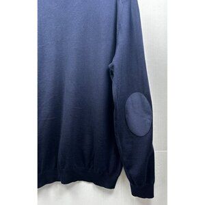 BRAX Sweater Mens XL 100% Merino Wool Navy Blue V-Neck Elbow Patch Classic Luxe