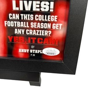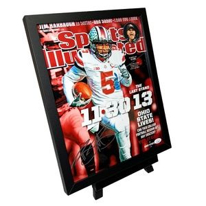 This listing features a BRAXTON MILLER NCAA OHIO STATE SIGNED AUTOGRAPHED OVERSIZED 11 X 14 Featuring JIM HARBAUGH on the cover.
