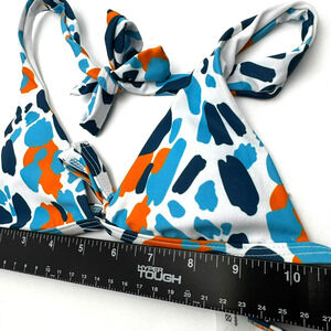 BRAZILIAN NWT Women Small Blue Orange Teeny Tiny Triangle Padded Bikini Top Swim