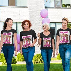 WHITE OR BLACK T-SHIRT WITH "HER FIGHT IS MY FIGHT BREAST CANCER AWARENESS"