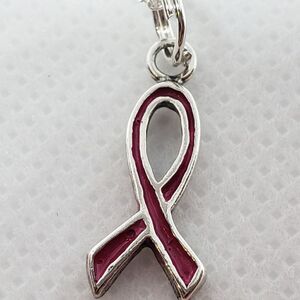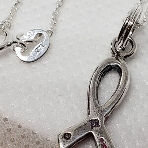 Beautiful, yet minimal. 16" small link sterling silver chain with attached sterling silver pink ribbon charm. Great way to show you are a warrior, a fighter, or a supporter. Boxed. Handmade item.