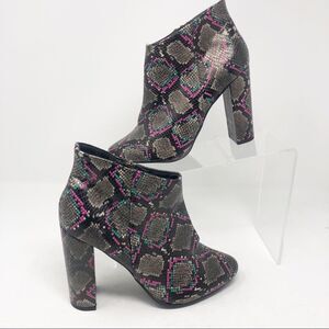 BRECKELLE’S | Snake Animal Print Side Zip Boots Booties Gray Pink Teal Size 7