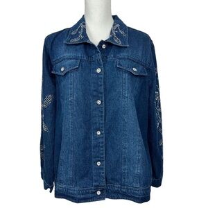 BRECKENRIDGE Women Blue Jean Jacket Sz 2X Silver Studs Flaws/studs loose/missing