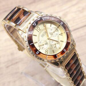 BREDA Chronograph Watch Womens Gold Tone Classic Stainless Steel Leopard Band