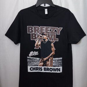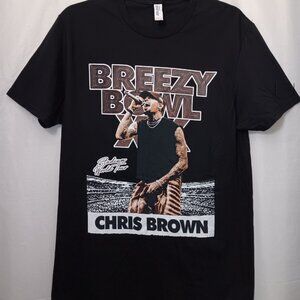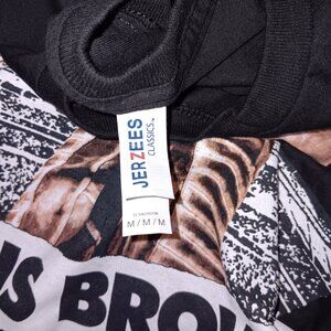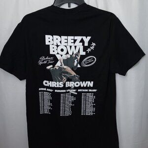 Size Medium - JERZEES CLASSIC Black color, short-sleeved t-shirt with custom made CHRIS BROWN STADIUM WORLD TOUR Graphic design on the Front and Back the Material is 100% Cotton in gently used condition