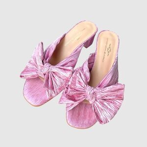 • Metallic pink plissé upper