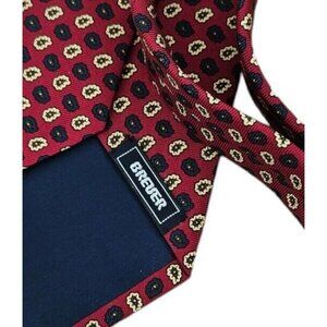 BREUER Men's 100% Silk Necktie LUXURY Tie Red Paisley W:3.6" EUC
