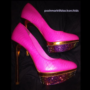 BRIAN ATWOOD HOT PINK SPARKLY VOLCANO RHINESTONE LEATHER HEELS DIY strassed