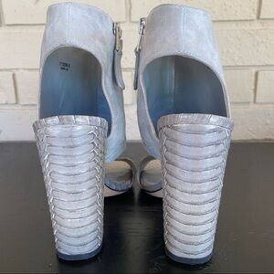 BRIAN ATWOOD GRAY SUEDE & SNAKESKIN SANDALS HEELS BOOTIE MODERN MINT SIZE 5.5. Stunning heels with impeccable quality. Modern and sleek. Drips luxe