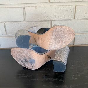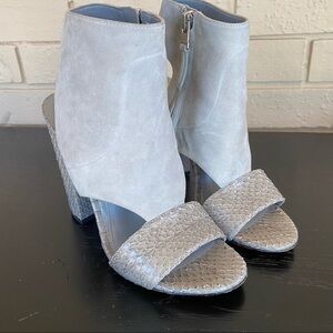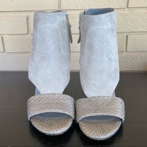 BRIAN ATWOOD GRAY SUEDE & SNAKESKIN SANDALS HEELS BOOTIE MODERN MINT SIZE 5.5