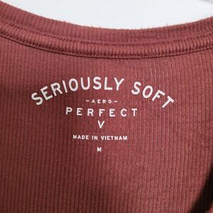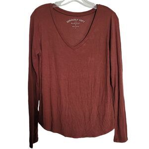 Rust/Brick Red Seriously Soft Ribbed Long Sleeve V Neck Tee