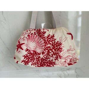 BRIC'S Cotton Canvas Beach Bag Red Corrals Tote 17"